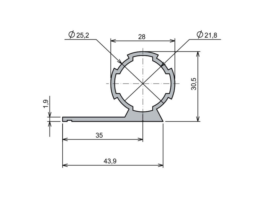 DYN.Ø28 - 1.7 mm L Tube Profile 3000 mm