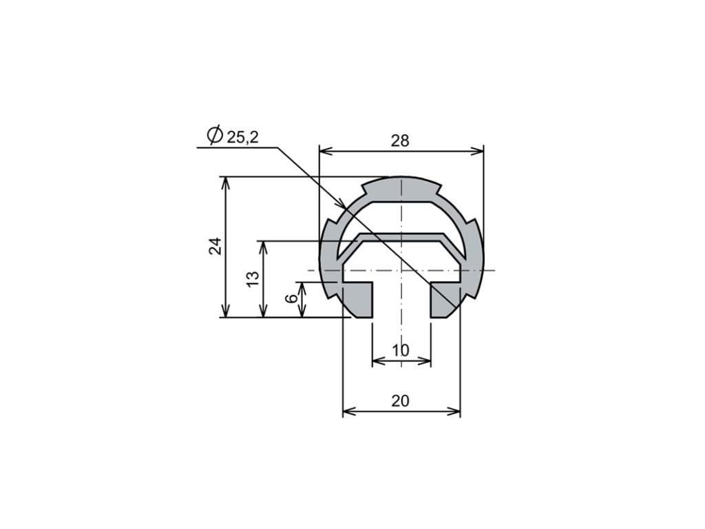 | 1.6.28.02.17.00 | DYN.Ø28 T Channel Profile 3000 mm | Ø28 | 6063 T5 | 3000 | 1.13 cm⁴ | 1.87 cm⁴ | 0.82 cm³ | 1.55 cm³ | 2.4 cm² | 0.7 Kg/m | 1000 |
