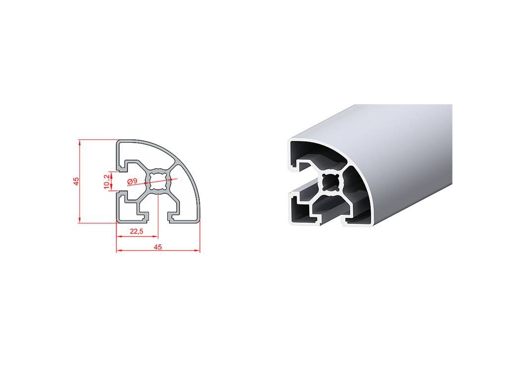 Hliníkový stavebnicový profil 45 x 45 mm radius