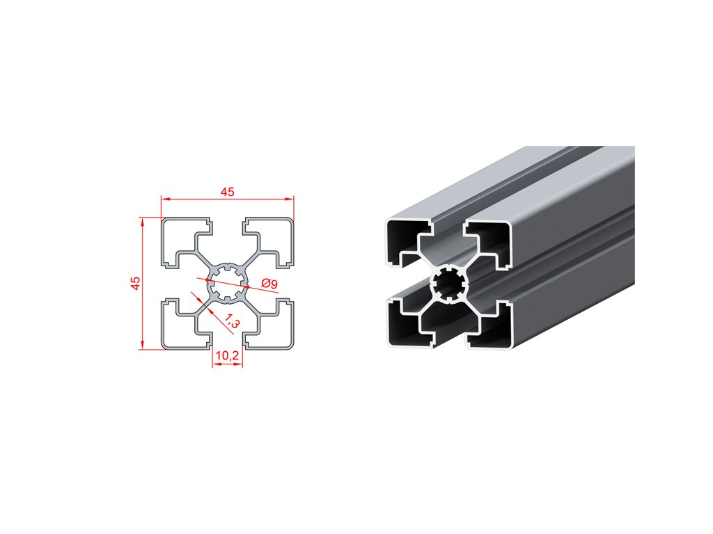 Hliníkový stavebnicový profil 45 x 45 mm UltraSuperLight S10