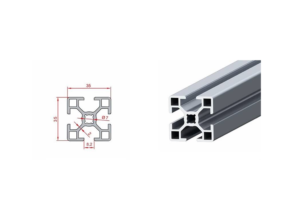 | 1.1.08.035035.02 | Hliníkový stavebnicový profil 35 x 35 mm | 35x35 | 6063 T5 | 3000 | 4.53 cm4 | 4.53 cm4 | 2.59 cm³ | 2.59 cm³ | 3.66 cm² | 1.02 Kg/m | 1000 |