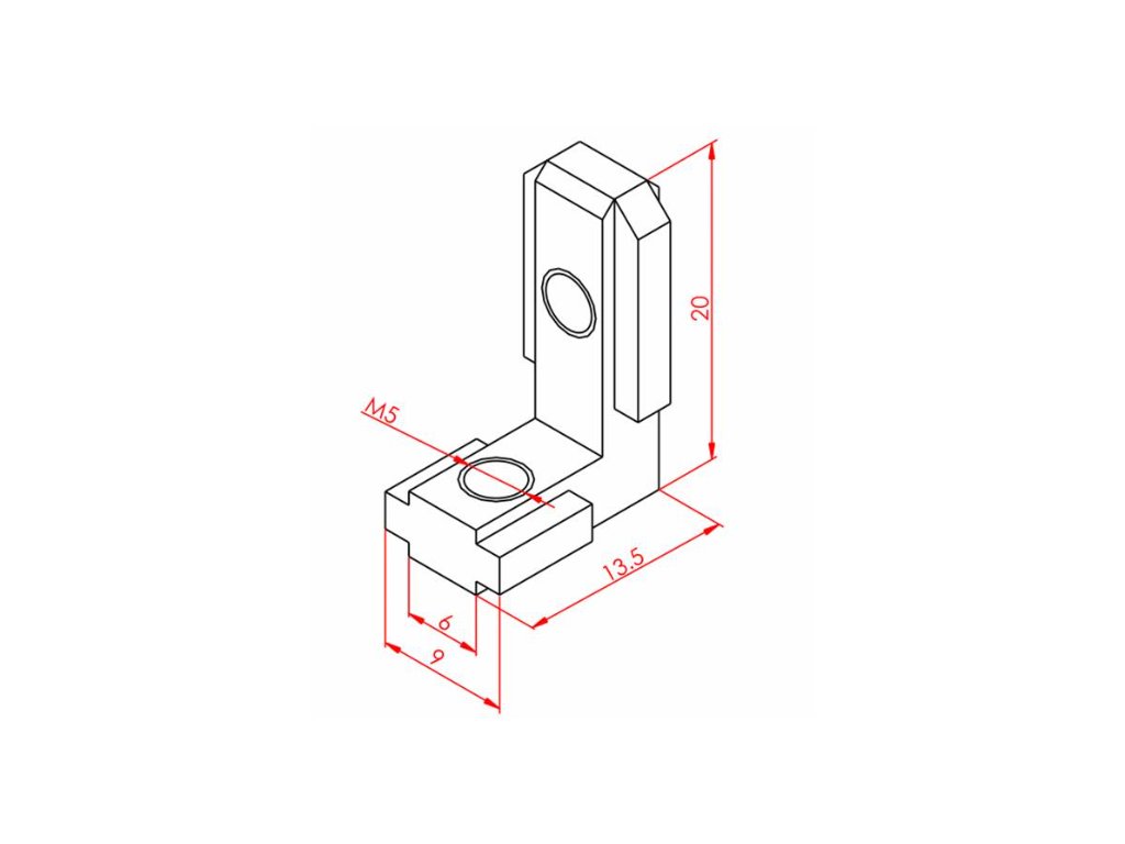 › Hliníkový stavebnicový systém profilů › Vnitřní rohová spojka v drážce 6 mm