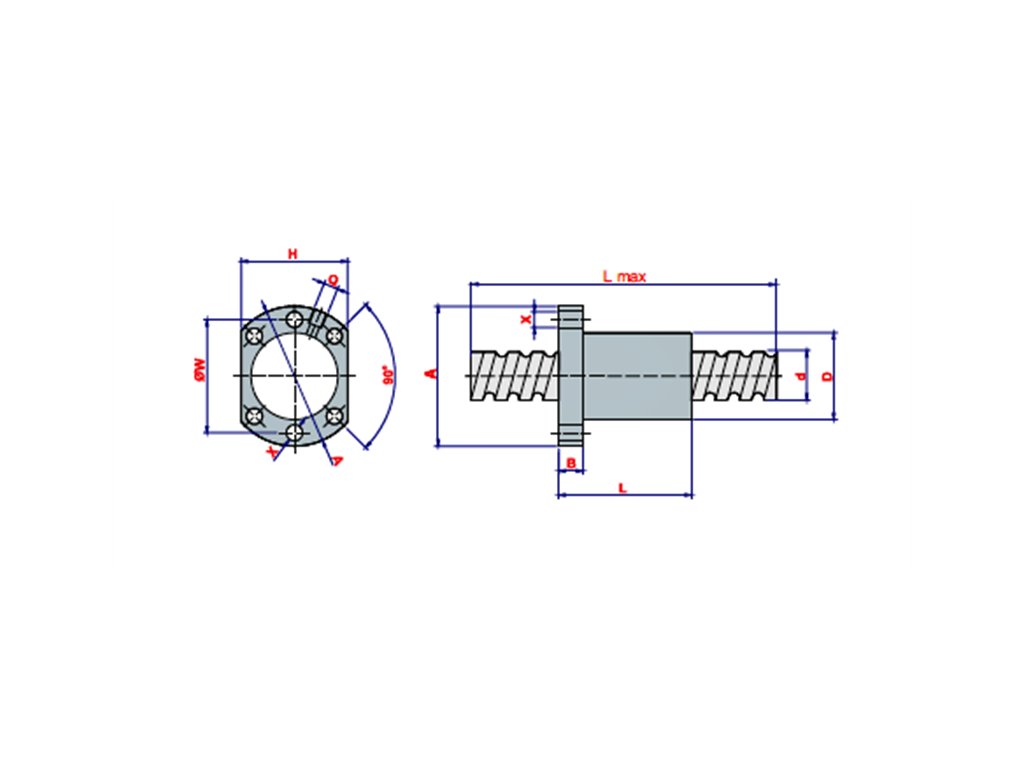 Code | Name | Type | L max | A | X | H | W | B | L | d | D | Q | Ca (Kgf) | Coa (Kgf) | Lenght (mm) |