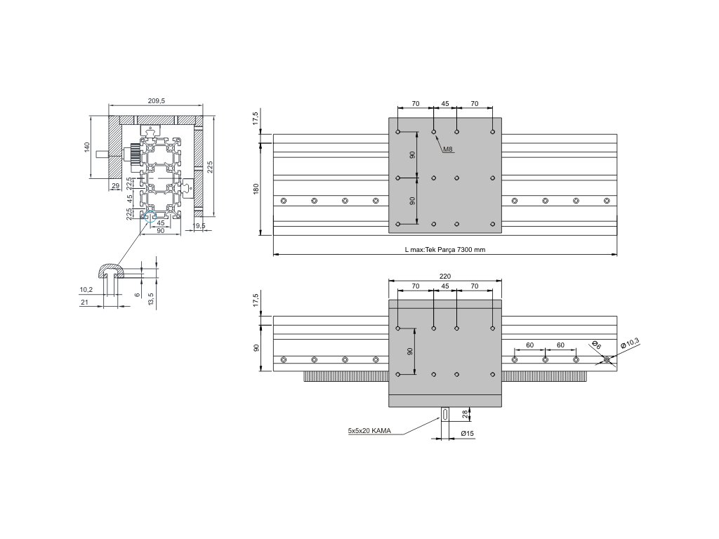| 5.4.08.090180.2.03.2.1000 | 90x180 Rack and Pinion Bridge Module | 220 mm | Mod 2 Straight | THK | HSV 20 | 2,2 mt/sn | 38,330 kg | 1000 |