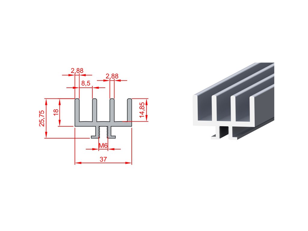 | 1.2.00.018037.00 | 18x37 Slide Profile K10 | 18x37 | 6063 T5 | 3000 | 1.37 cm⁴ | 4.15 cm⁴ | 1.05 cm³ | 2.25 cm³ | 3.28 cm² | 0.89 Kg/m |