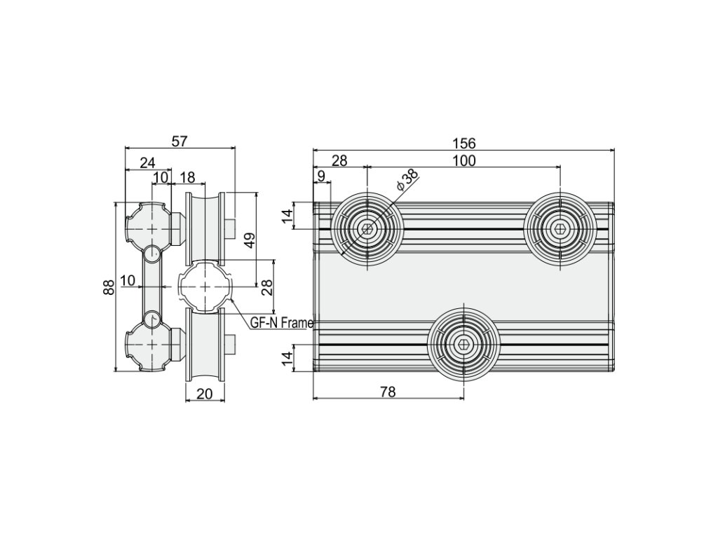 | 2.3.050.28.23.88.150 | Roller Slider 150 mm | DKE28-38 | Aluminum Casting+Delrin | 460 |