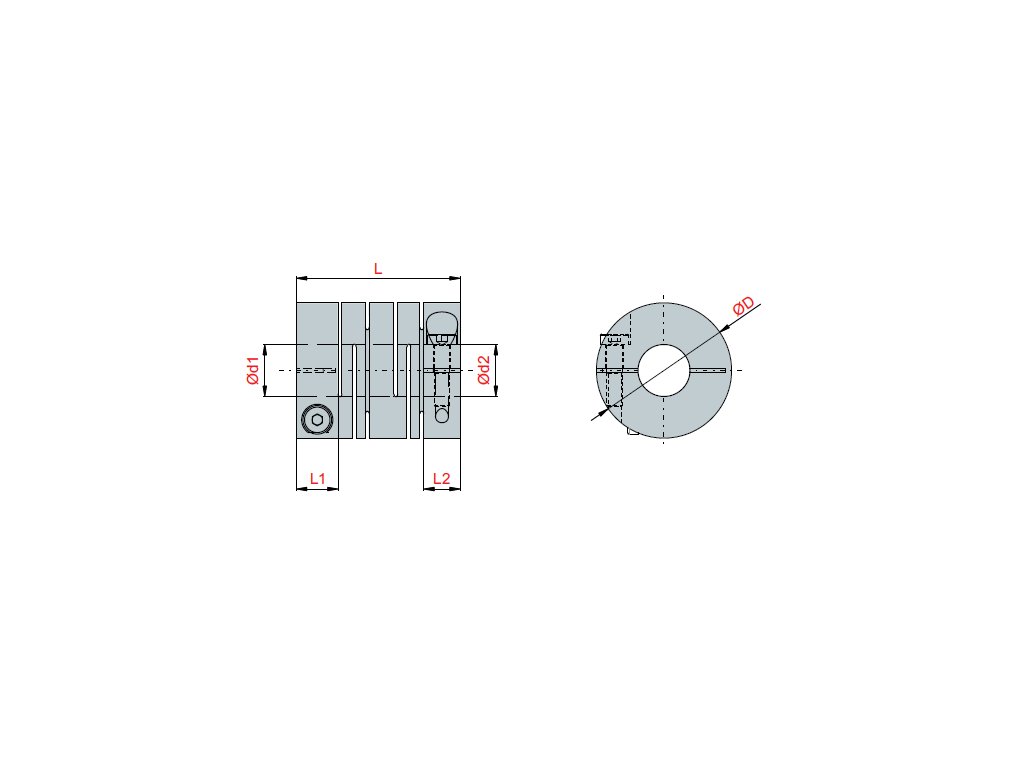 Code | Name | Type | Ød min | Ød max | D | L | L1 L2 | M | Max Angular Misalignment (°) | Max Deviation of Axis (mm) | Max Torque (Nm) | Max Cycle (rpm) |