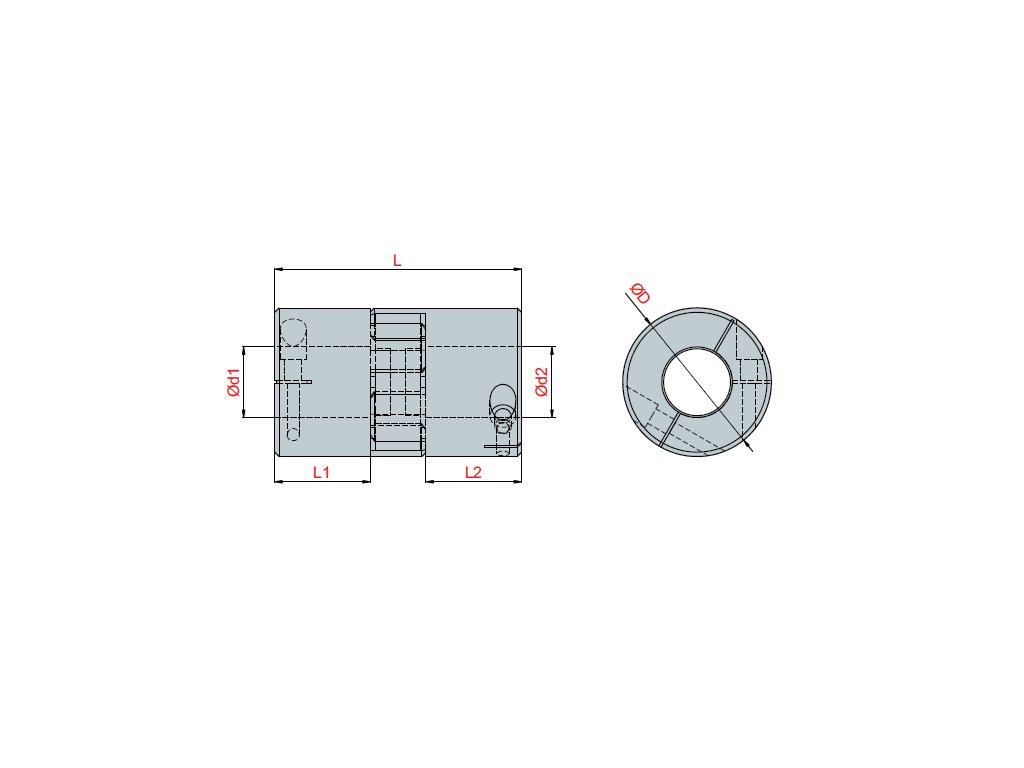 Code | Name | Type | Ød min | Ød max | D | L | L1 L2 | M | Max Angular Misalignment (°) | Max Deviation of Axis (mm) | Max Torque (Nm) | Max Cycle (rpm) |