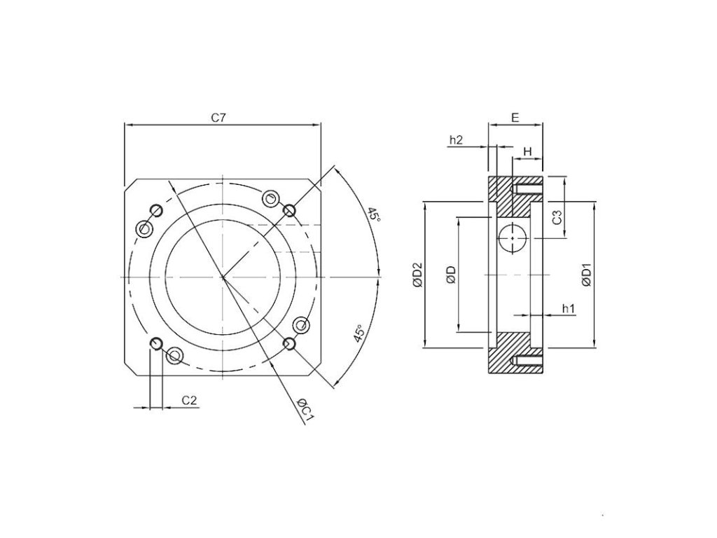 | 5.3.000070.14 | Reducer Connection Flanges | PGCH 070 | DELTA - ECMAC20604 | 70 | M6 | 80 | 44 | 70 | 45 | 24 | 6 | 4 | 37 | Ø14 | 6063 |