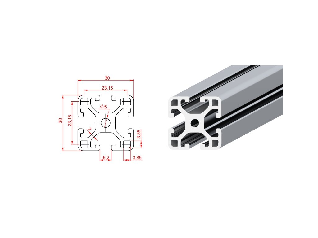 | 1.1.06.030030.02.1 | 30x30 Light Sigma Profile Special Series | 30x30 | 6063 T5 | 3000 | 3,72 | 3,72 | 1,86 | 1,86 | 4,24 | 0,94Kg/m |
