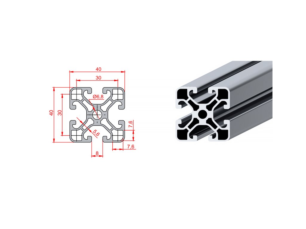 | 1.1.08.040040.03.1 | 40x40 Super Light Sigma Profile Special Series | 40x40 | 6063 T5 | 3000 | 7.57 cm4 | 7.57 cm4 | 5.04 cm³ | 5.04 cm³ | 5.17 cm² | 1,40Kg/m |