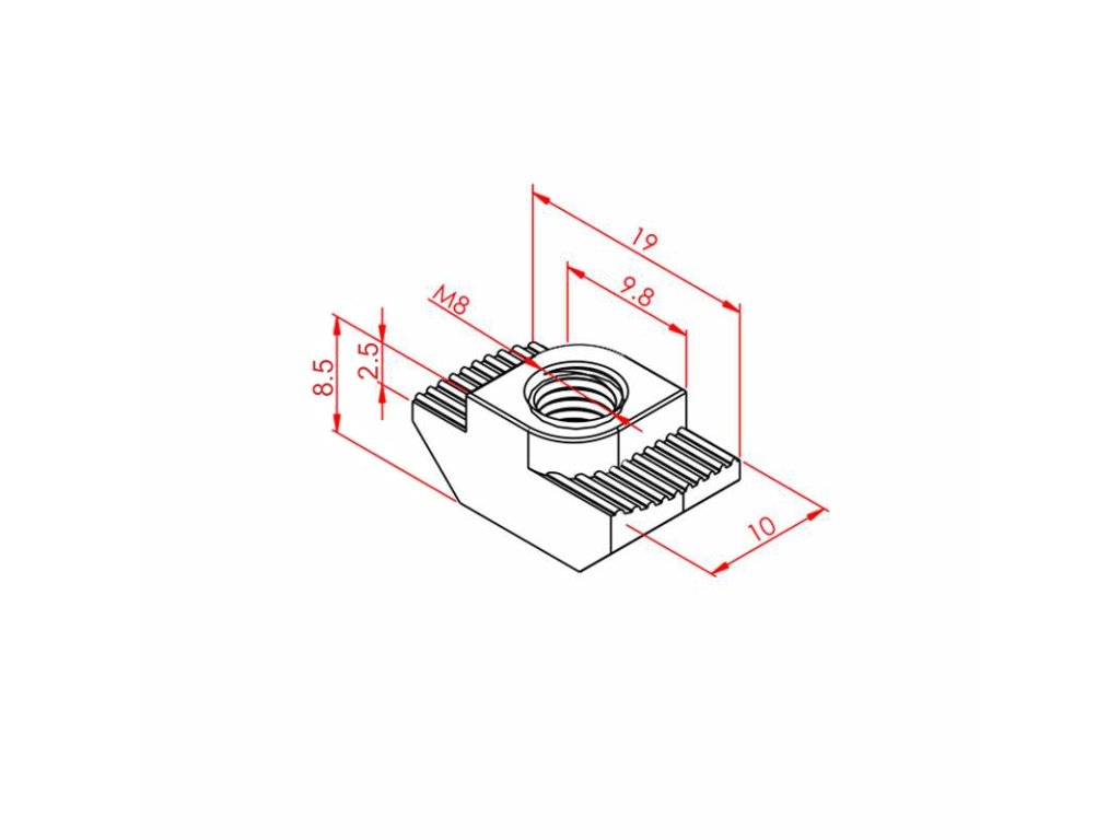 | 2.1.001.10.08 | T matice otočná Drážka - slot: 10 mm, Závit: M8 | 235 Çelik | 5,5 |