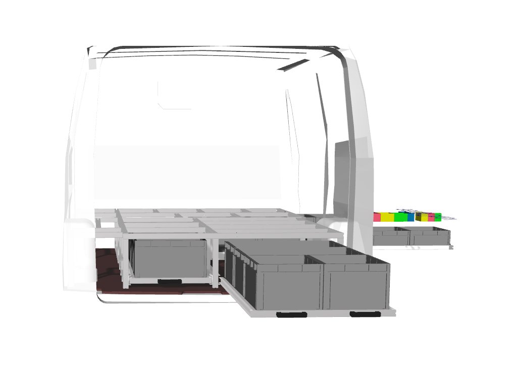 Skládá se ze dvou částí, zadní a boční plus úložný prostor na trubky, tyče.