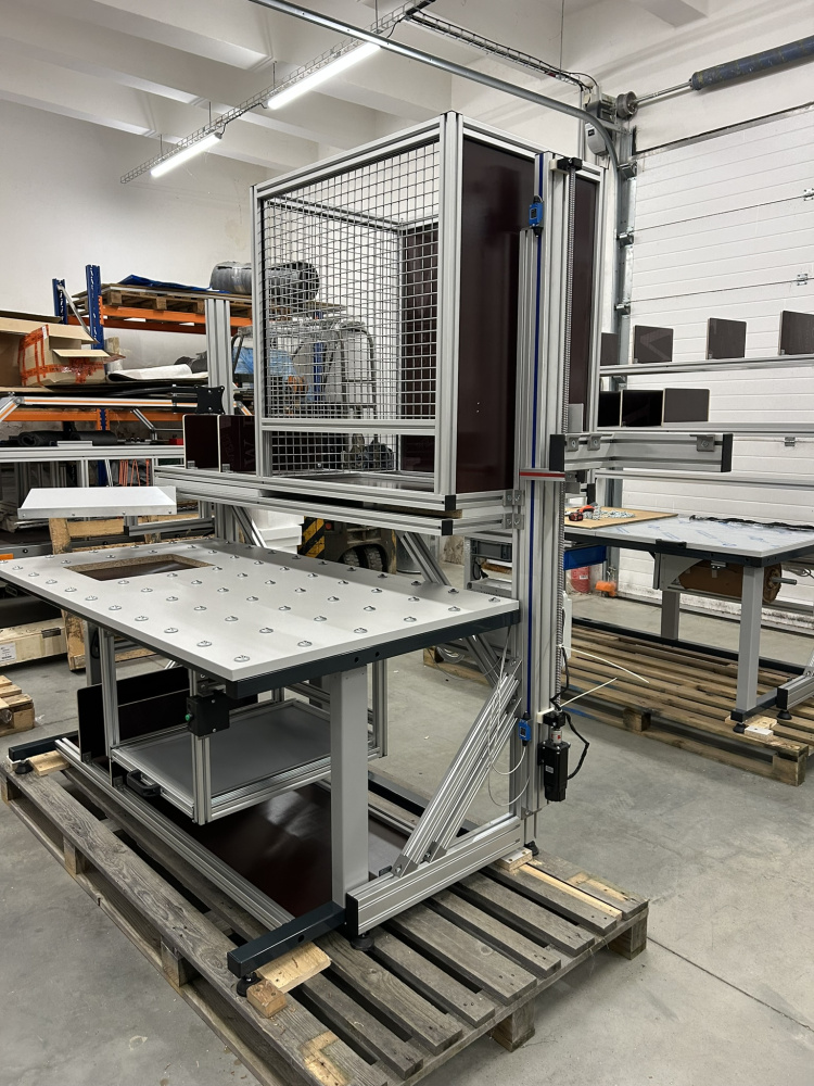 Začali jsme vyvíjet vlastní elektrický zvedací systém pro zvýšení ergonomie. Lze jej využít např při zvedání těžkého přístroje do opravdu velké výšky nad pracovním stolem. Nosnost zvedací police, její velikost i rychlost lze mít přesně dle individuálních potřeb zákazníka.